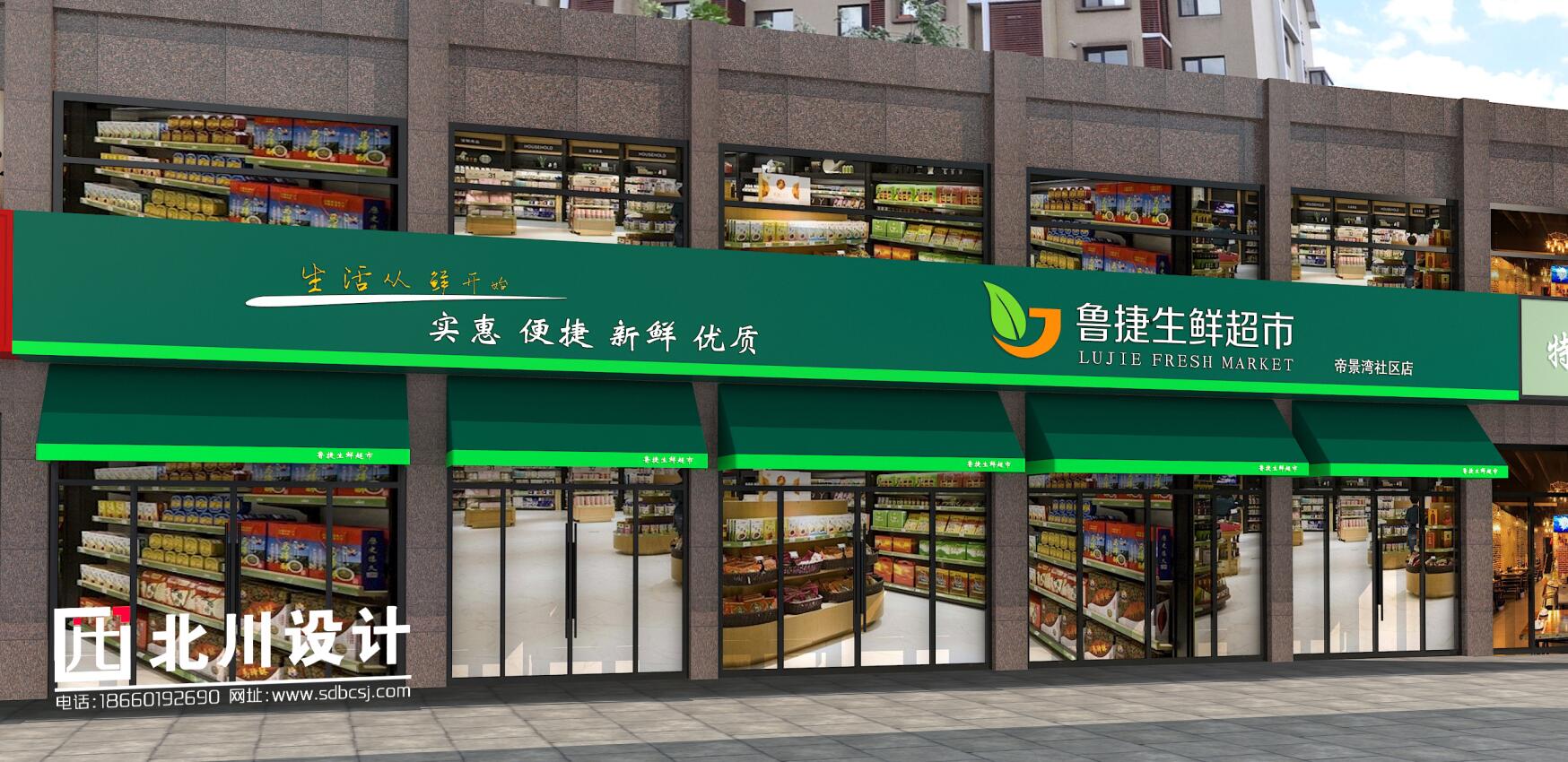本案超市項(xiàng)目位于山東省鄆城縣,帝景灣小區(qū),周邊小區(qū)居民較多且小區(qū)周圍有幾年夫妻便利店面積大小均未超過100平方米店且沒有精品超市,周邊商業(yè)環(huán)境較好。綜合考慮購(gòu)物中心物業(yè)對(duì)本項(xiàng)目環(huán)境定位較高,周邊客源較多,故項(xiàng)目裝修設(shè)計(jì)定位為:精品超市。