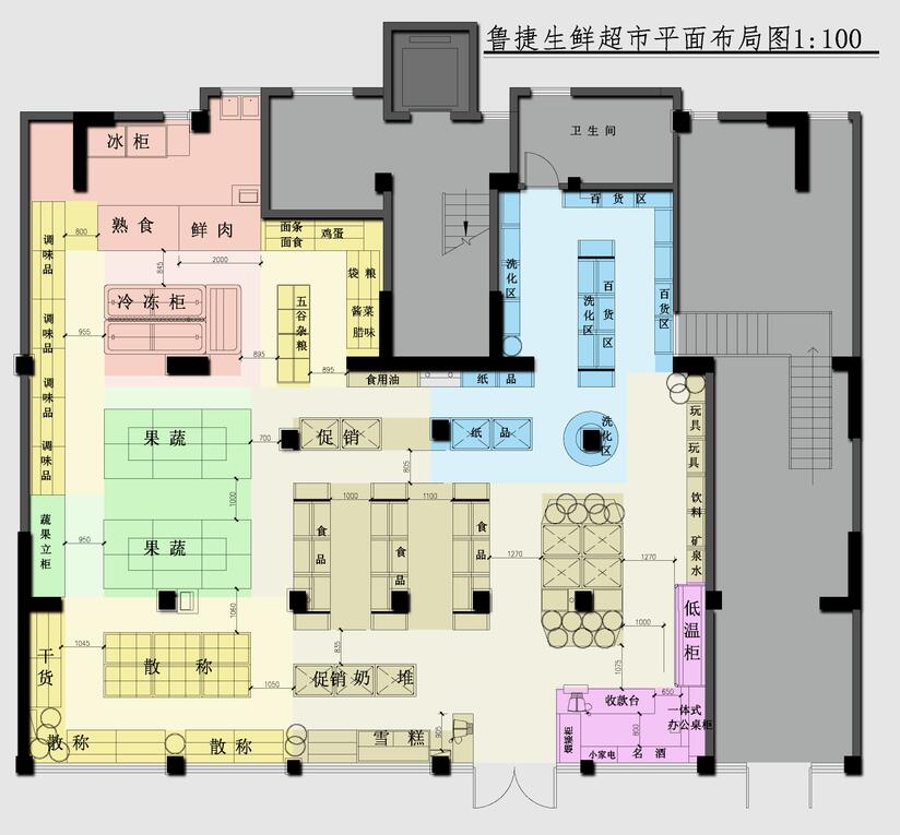 一、平面規(guī)劃:平面布局中重點(diǎn)考慮了本項(xiàng)目的建筑類型,物業(yè)形態(tài)以及項(xiàng)目所在的社區(qū)的客群,消費(fèi)能力,結(jié)合超市固有的特點(diǎn)(如裝修風(fēng)格定位、貨架的樣式、貨架規(guī)格,購(gòu)物通道大小等的設(shè)置)并考慮超市客群動(dòng)線的合理性和適當(dāng)延長(zhǎng)以及有意避免因建筑戶型限制而形成的購(gòu)物死角,