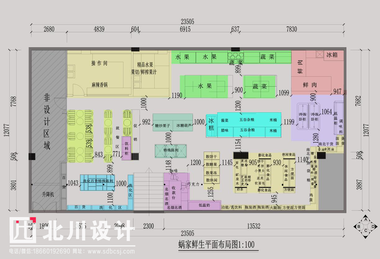 項(xiàng)目名稱:蝸家鮮生物業(yè)類型:零售空間規(guī)劃和設(shè)計(jì)項(xiàng)目面積:520平方米項(xiàng)目設(shè)計(jì)內(nèi)容:超市規(guī)劃設(shè)計(jì)、裝修設(shè)計(jì)、超市配套美陳設(shè)計(jì);