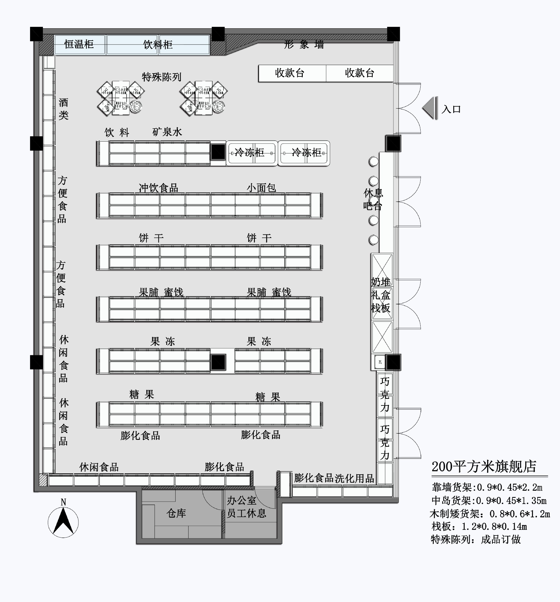 從30㎡到20000㎡:超市布局黃金法則與商品配置全解 2025-07-24 從30㎡到20000㎡:超市布局黃金法則與商品配置全解按規模與業態分類的超市布局策略1. 便利店/小型超市【面積標注】30-150㎡(單層為主)布局特點:以緊湊型動線為主,入口寬度1.2-1.5米,入口處設置促銷堆頭(如熱銷零食、應季商品),貨架間距0.8-1米,收銀臺長度2-3米,收銀臺附近擺放高毛利小件商品(口香糖